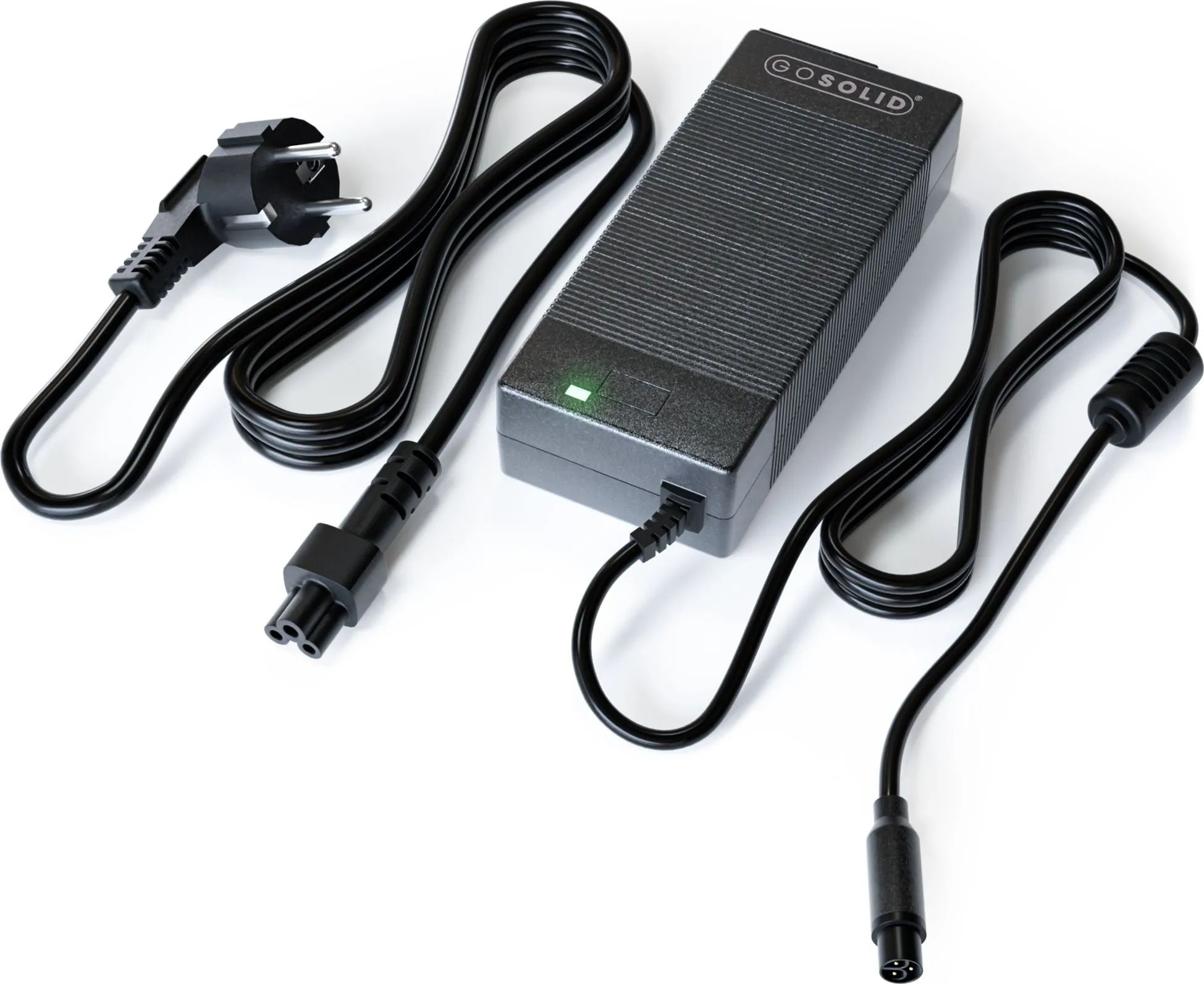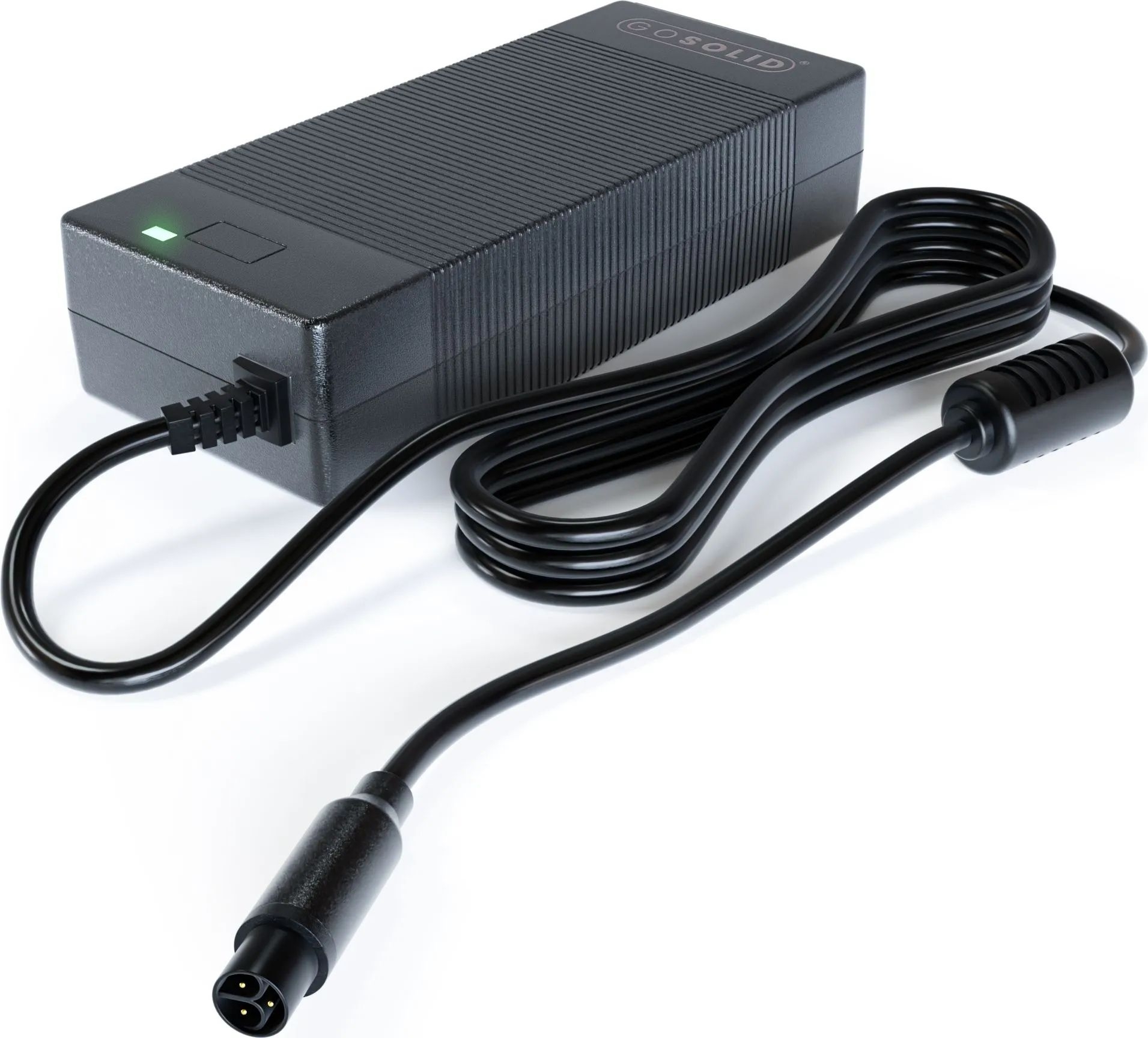 Compact GO SOLID! 36V 2A 3‑pin charger, ideal as a replacement charger for Brinckers Intube batteries. Fast, reliable charging with built‑in overcharge and short‑circuit protection and LED charge indicator. Lightweight, compact design for e‑bikes and mobile devices. Compatible with Brinckers Intube battery.