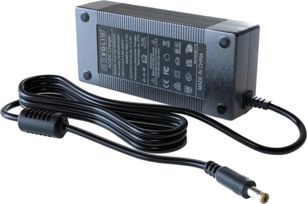 GO SOLID! replacement charger for electric bikes, compatible with Lankeleisi. Fits MG600 Plus and RX800 Plus models. Compact, lightweight design for easy storage and transport. Built-in safety protections against overheating, overcurrent and short circuit for reliable charging. Great as a direct replacement or spare charger for your e-bike.