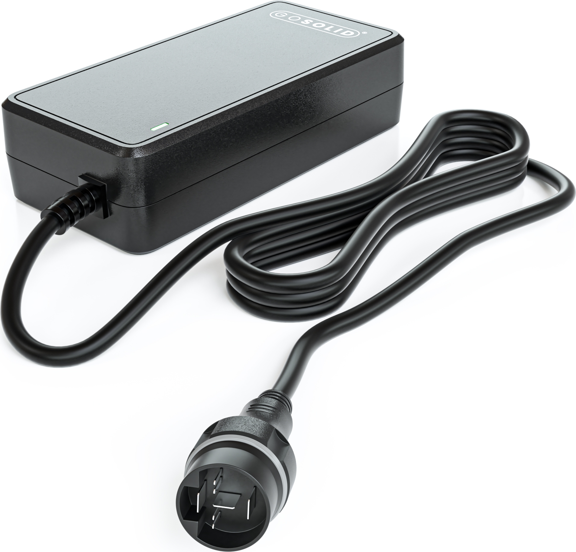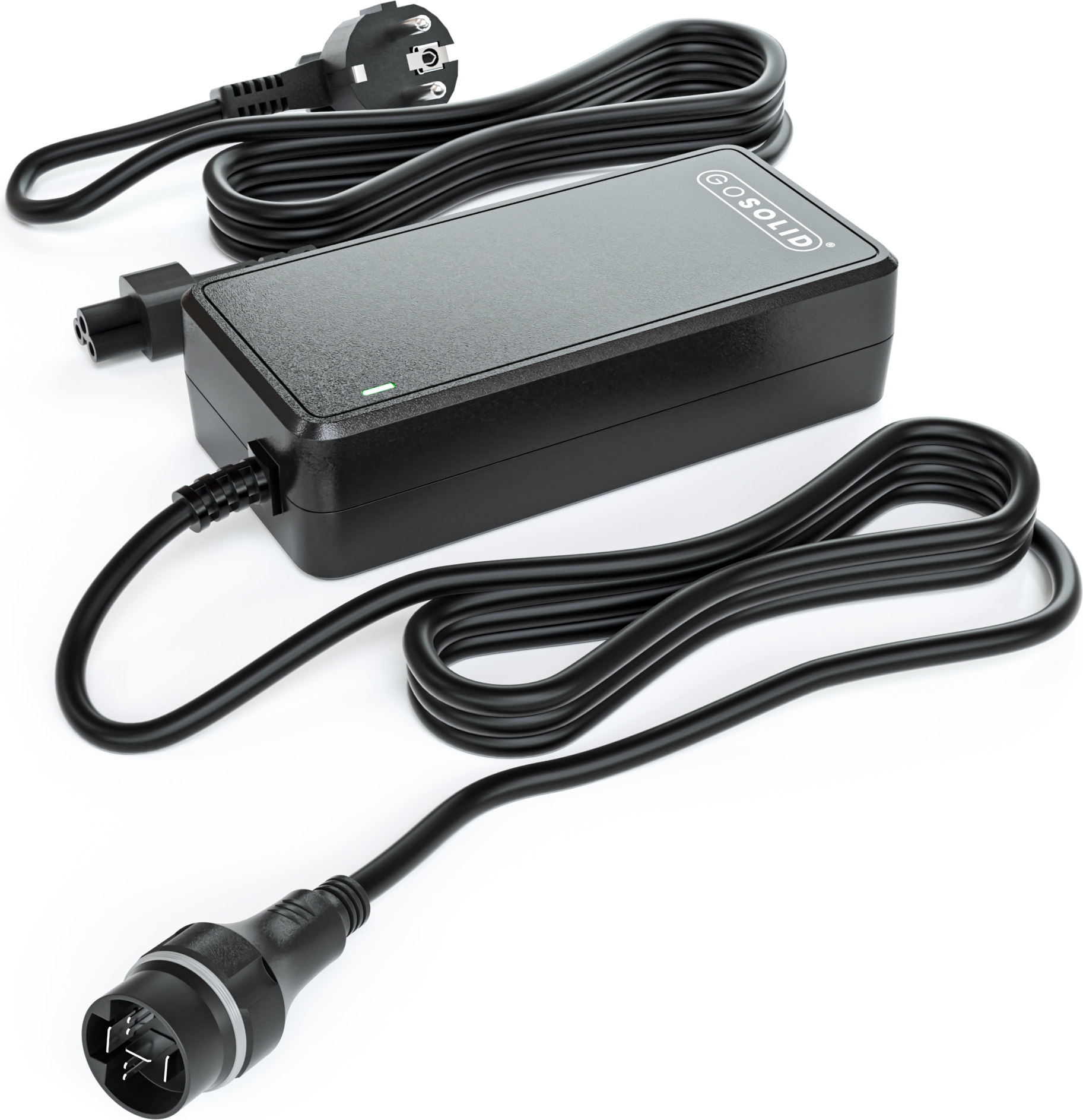 Compact GO SOLID! Charger PASC9 for Yamaha In-Tube 36V X1R-10 battery. Replacement charger delivering stable charging performance, built-in safety protections, LED charge indicator and a durable charging cable. Ideal for e-bikes and light electric vehicles. Compatible with Yamaha.